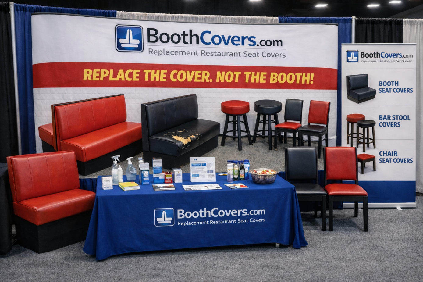 One of the highlights was the 40th Annual Hotel & Restaurant Trade Show in Myrtle Beach, South Carolina, where we demonstrated how our covers can quickly transform worn seating into a clean, like-new appearance.